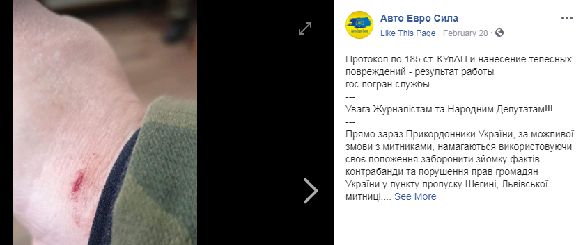 В ході бійки один з активістів отримав подряпину. У відповідь активісти звинуватили митників в нанесенні тілесних ушкоджень.