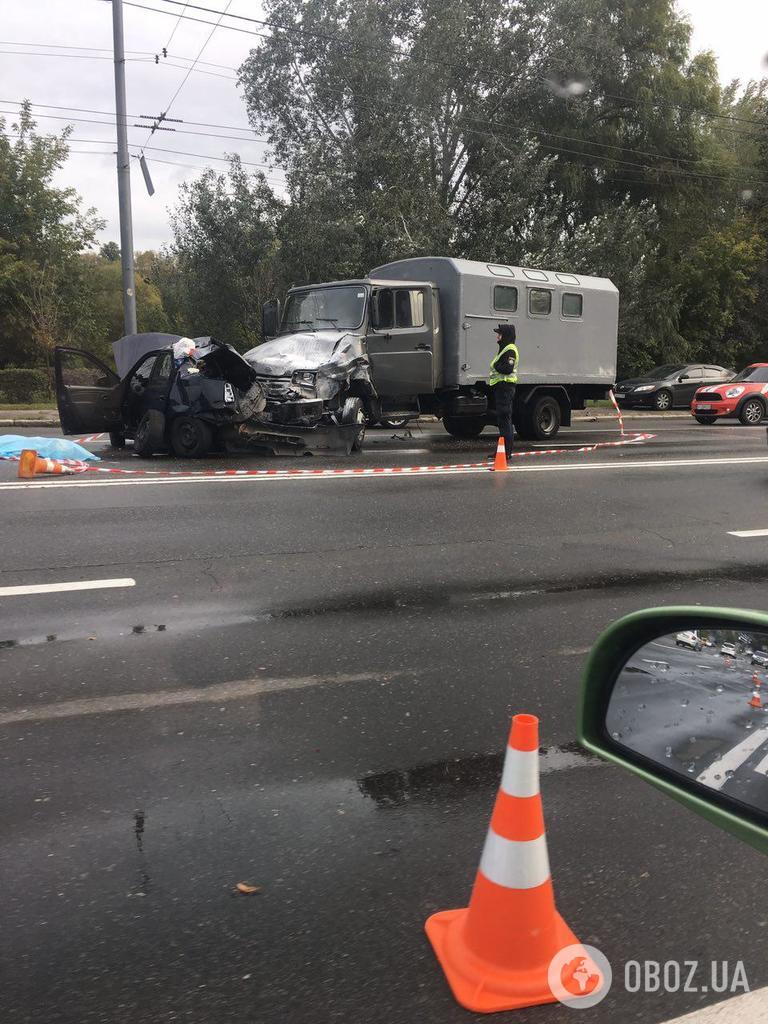 Зі слів очевидців, таксист не впорався із керуванням та виїхав на зустрічну смугу, де зіштовхнувся із вантажівкою. Відео з місця аварії опублікували на сторінці “Київ Оперативний” у Facebook.