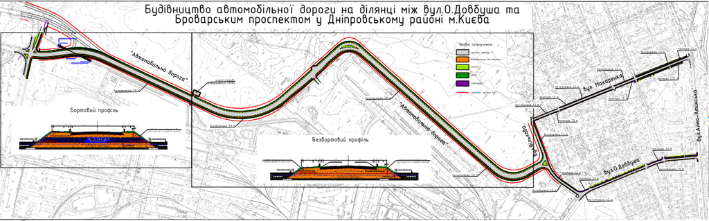 Іншим важливим об’єктом 2019 року стане початок будівництва автомобільної дороги між вул. Довбуша та Броварським проспектом. Будівництво нової дороги якісно покращить транспортне сполучення мікрорайону ДВРЗ, адже на сьогодні єдиним сполученням для всіх його мешканців залишається вул. Алматинська.