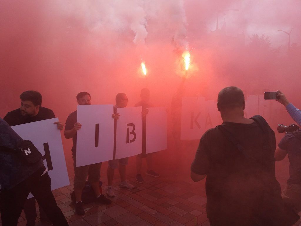 Фотографії акції протесту опублікував на своїй сторінці в Facebook журналіст Родіон Шовкошитний. На знімках видно, що демонстранти запалювали фаєри і вишикувалися з плакатами “Уже 36 днів (з моменту вчинення злочину. – Ред.) без відповіді”.