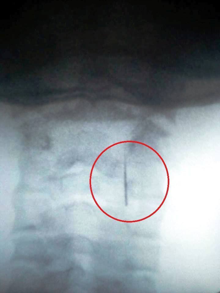 З посиланням на медиків вона додала, що якби голка потрапила в легені або трахею, інцидент міг закінчитися летальним результатом.