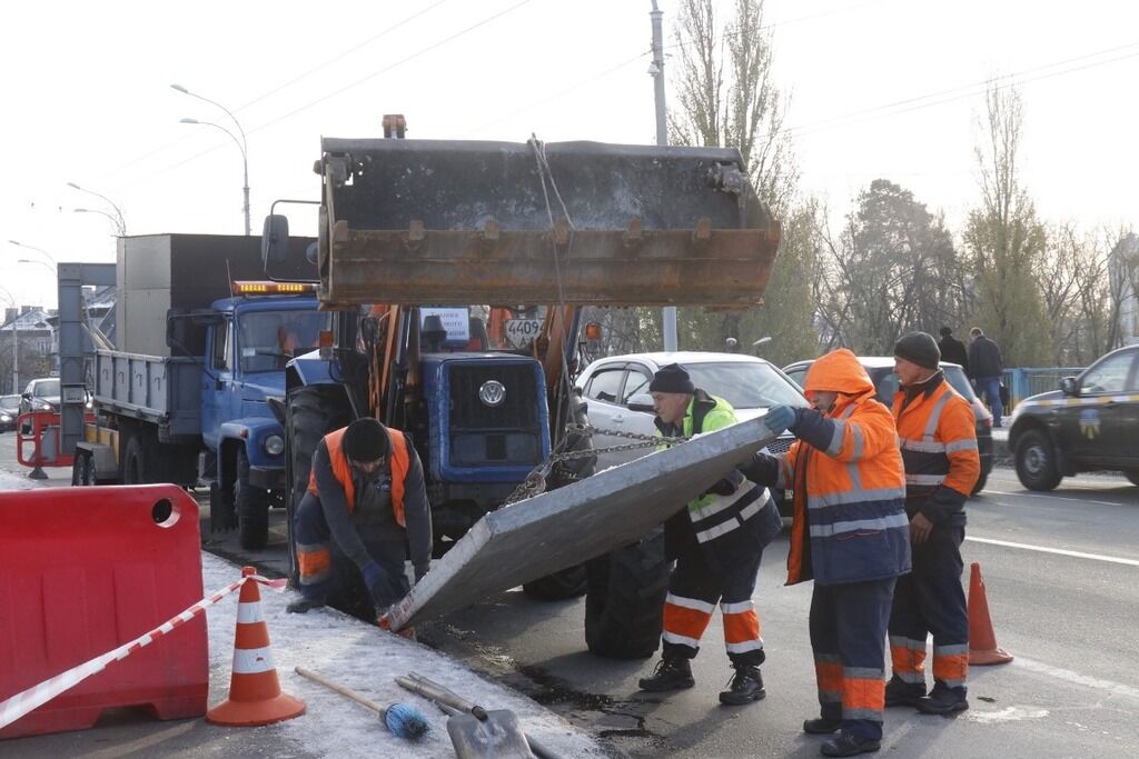 У Дарницькому районі Києва на мосту над Броварським проспектом провалилася ділянка асфальту. Яма утворилася прямо на тротуарі, чим значно ускладнила пересування пішоходів.