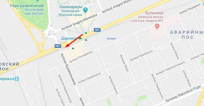 Зазначається, що провал утворився просто поруч зі ст. метро “Дарниця”, на вулиці Будівельників. Станом на 14:40, ускладнень руху авто на місці події не було.