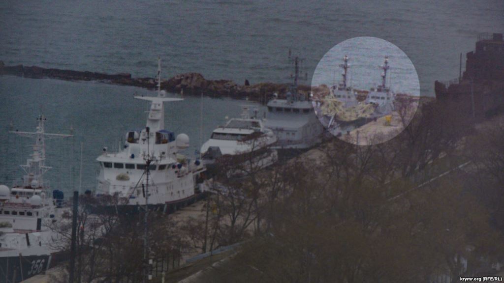 Українські військові катери “Нікополь” і “Бердянськ”, захоплені Росією біля берегів анексованого Криму, все ще знаходяться в порту Керчі.
