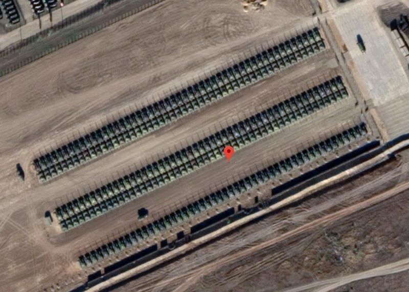 “Зображення показують сотні основних бойових танків, таких як Т-64, а також Т-62М, водночас як тисячі військових вантажівок, артилерійських систем і танкерів розташовані трохи вище”, — сказано в повідомленні.