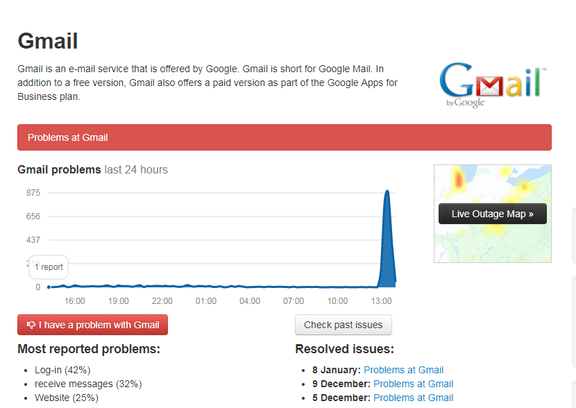 Велика частина користувачів (42%), яка повідомили про збої в Gmail, стикається з проблемами при авторизації, 31% зазнає труднощів при отриманні електронної пошти.