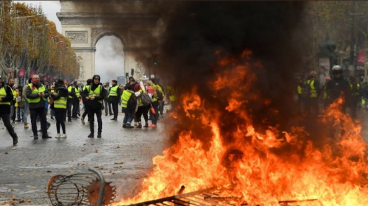 Latest pictures of clashes between police and “yellow vest” anti-government protesters in Paris https://t.co/Jp72QEzTFo pic.twitter.com/hFnuvyKJ2k